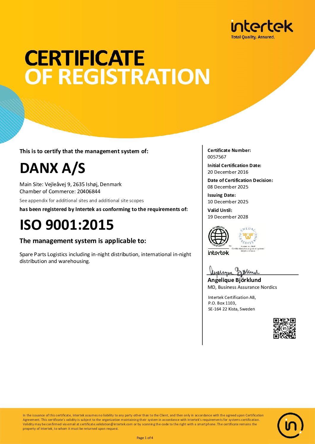 DANX obtained the ISO 9001:2015 certification in December 2016.